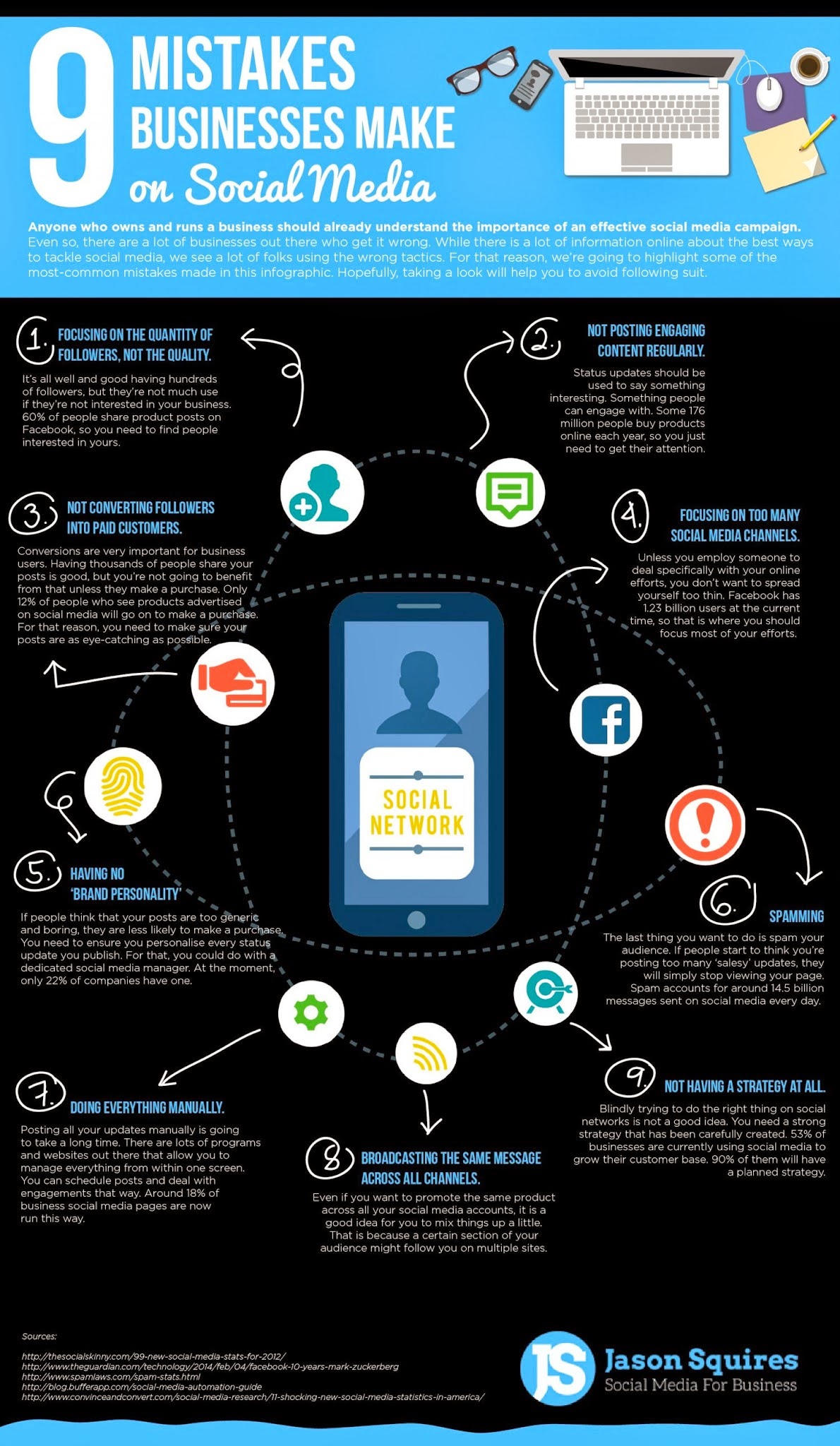 9 errori di Social Media Marketing che frequentemente commettono gli imprenditori e in generale le imprese | infographic